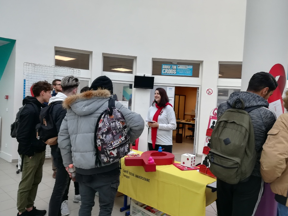 Le Service Santé-Social Nord (SUMPPS) a proposé des actions de prévention dans le cadre de la journée mondiale de lutte contre le SIDA, à Metz le 30 novembre et à Longwy le 4 décembre. En partenariat avec la MGEL et la CPAM, des stands ont été tenus par des étudiants relais et professionnels de santé disponibles pour répondre aux questions des étudiants et les informer pour prévenir les risques face aux IST.