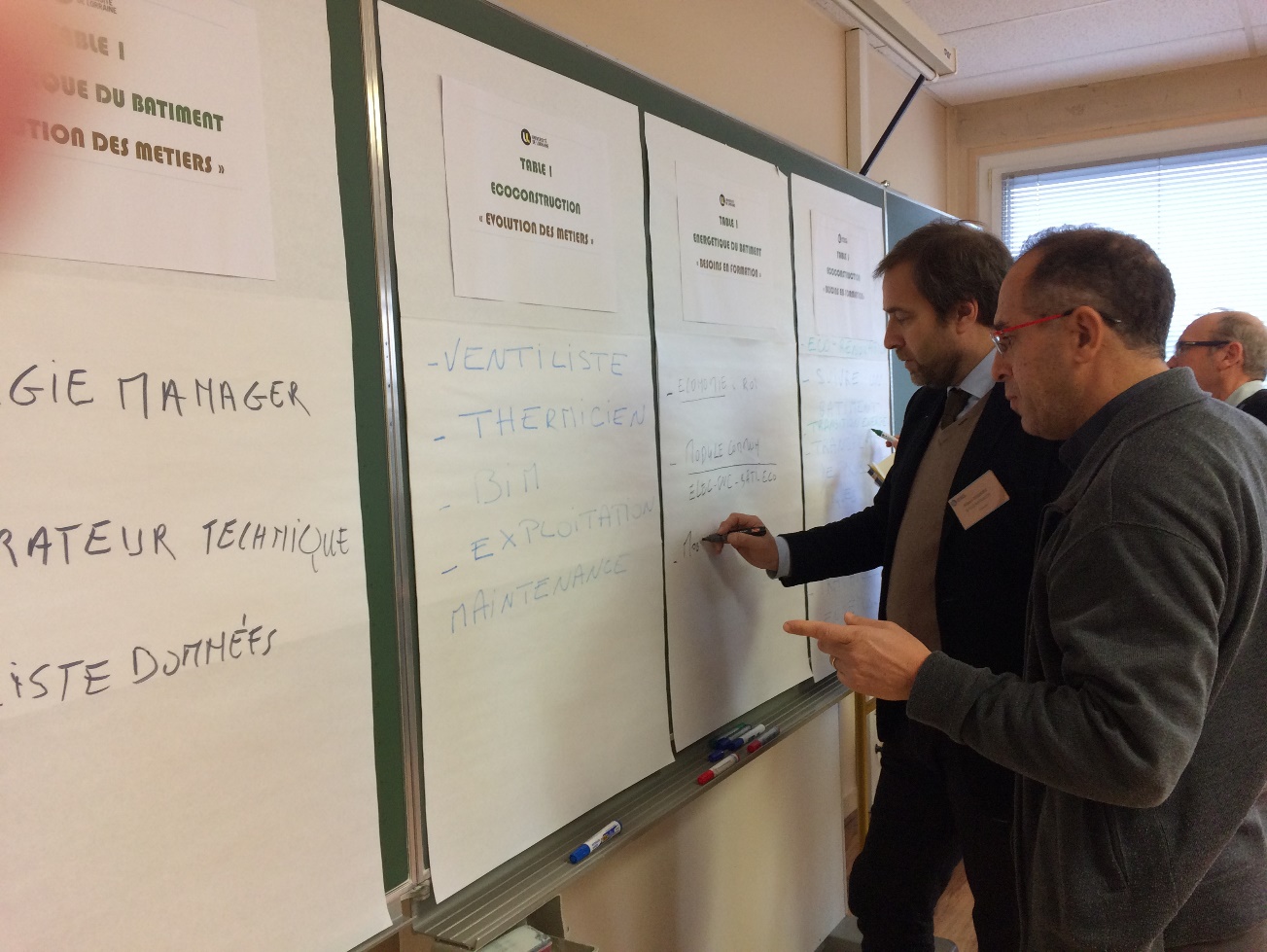 Introduit par la Vice-Présidente Formation de l’UL, Mme CHAUPAIN-GUILLOT, l’atelier a réuni autour de 2 tables « experts-enseignants » et « représentants d’entreprises », l’une sur la thématique « Energétique du bâtiment », l’autre sur la thématique « Ecoconstruction », animées par 2 facilitateurs de la DFOIP.
