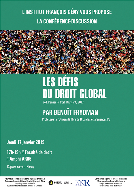 Conférence de Benoît Frydman, professeur à l'Université libre de Bruxelles et à Sciences-Po, suivie d'une discussion, animée par le professeur Frédéric Géa, avec un "comité de lecteurs" composé de doctorants et docteurs de l'IFG et de l'IRENEE.