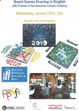L'association ABAN (Amis de la Bibliothèque Américaine) organise une soirée de jeux de société en anglais mercredi 23 janvier 2019 de 19h00 à 22h00.
