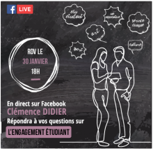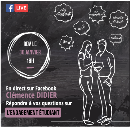 Chaque dernier mercredi du mois, durant 30 min Clémence Didier votre VP Etudiant, répond à vos questions.