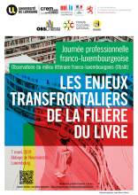 Cette journée professionnelle intitulée « les enjeux professionnels dans la filière du livre » organisée à l’Abbaye de Neumünster à Luxembourg s'inscrit dans le cadre plus large du programme Obslit. Le programme Obslit vise à créer un observatoire du milieu littéraire franco-luxembourgeois afin d’étudier les relations, les médiations qui se nouent entre les différents systèmes et aires culturelles, c’est-à-dire les auteur·e·s, les institutions culturelles et les publics. L'observatoire mettra en réseau les divers acteurs de la filière du livre afin d’assurer une visibilité nationale et transfrontalière de la littérature française et luxembourgeoise et d’engager un véritable dialogue entre art et sciences humaines et sociales. À partir notamment de la production de données d’enquête (entretiens, questionnaires, étude des publics) et dans une perspective transdisciplinaire, il s’agit d’étudier les pratiques et politiques culturelles relatives à la filière du livre, mises en œuvre dans les deux pays. La recherche s’articule selon trois axes : le monde du livre, le milieu littéraire au prisme de l'institution scolaire et la littérature hors du livre.