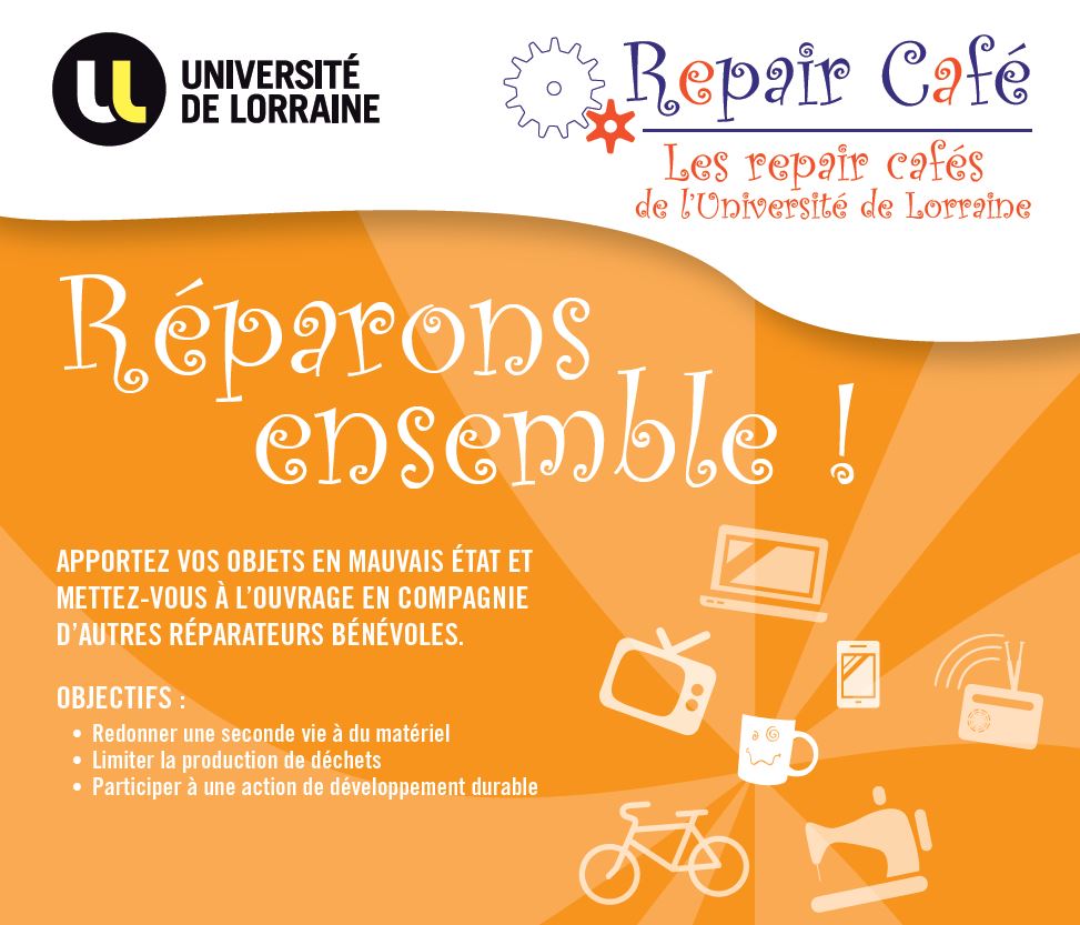L'Université de Lorraine organise ses repair cafés : apportez vos objets en mauvais état et mettez-vous à l'ouvrage en compagnie d'autres réparateurs bénévoles, dans une ambiance conviviale et solidaire!