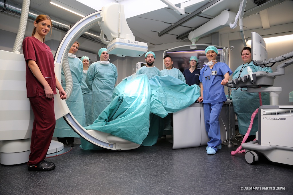 Grâce à cette acquisition, la formation à ces nouvelles technologies devient un levier important dans la certification des gestes thérapeutiques qui répond bien aux enjeux de développement médico-économique dont le CHRU de Nancy se positionne déjà comme l’un des centres experts dans le domaine. L’expérience de l’Ecole de Chirurgie avec de nombreux industriels et l’attente de jeunes confrères (nancéens mais aussi à l’échelle nationale/internationale) laisse entrevoir une dynamique d’ouverture pédagogique et en R&D. Ceci permet d’impulser un grand nombre de formations et d’investigations telles que l’angiographie diagnostique et thérapeutique, les implants cardiovasculaires (Stents et autres bioprothèses valvulaires aortiques percutanées), l’électrophysiologie, la neuroradiologie interventionnelle, l’hépatologie, la cancérologie (biopsies, ponctions, interventions sous célioscopie) ou même encore la neurochirurgie.