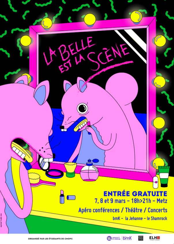 Le festival veut permettre d’interroger les rôles qu’ont les femmes dans la culture tout en faisant découvrir des artistes féminines. L’affiche du festival a d’ailleurs été réalisée par Alice Monvaillier, artiste graphiste et illustratrice indépendante travaillant à Metz. Il est organisé par les étudiants en 3e année de licence Conception et Mise en Œuvre de Projets Culturels présentent le festival La Belle est la Scène.