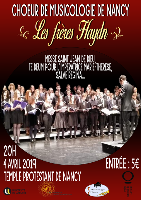 Jeudi 4 avril, au Temple place Maginot de 10h30 à 12h, le choeur propose au public une répétition générale du concert qu'il donnera le même jour à 20 heures. Le programme est dédié aux frères Haydn.