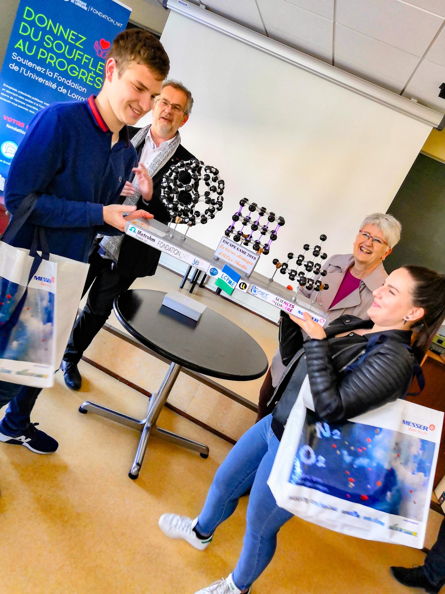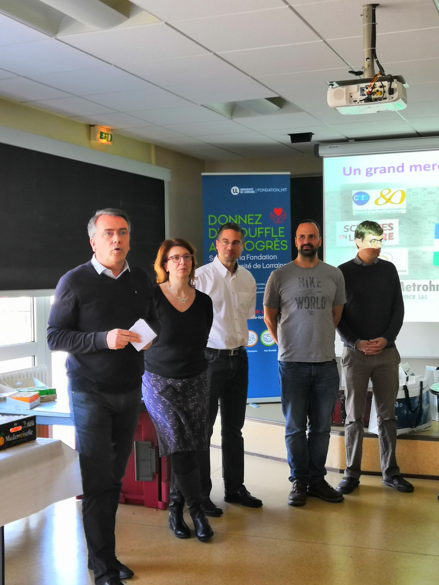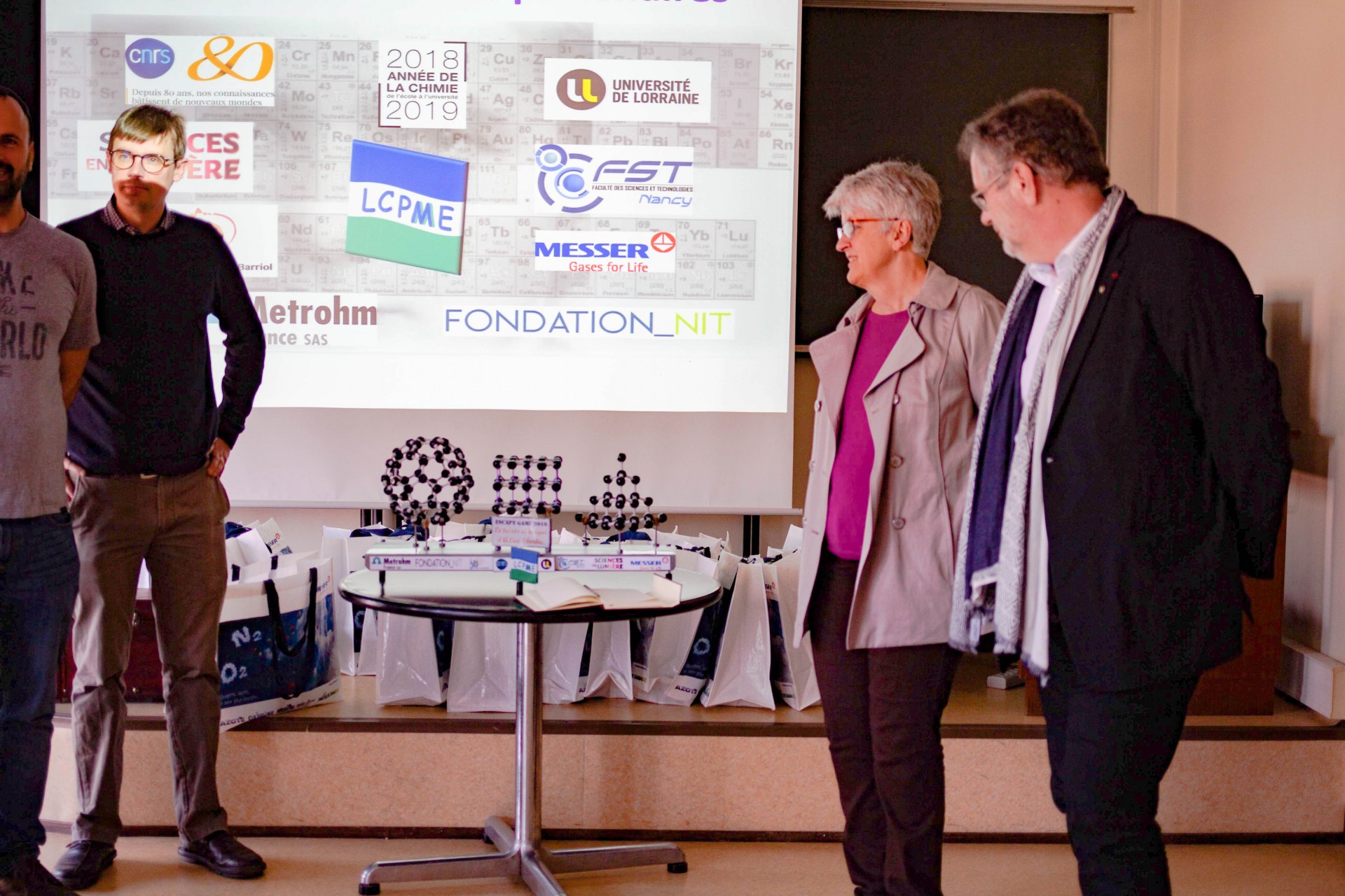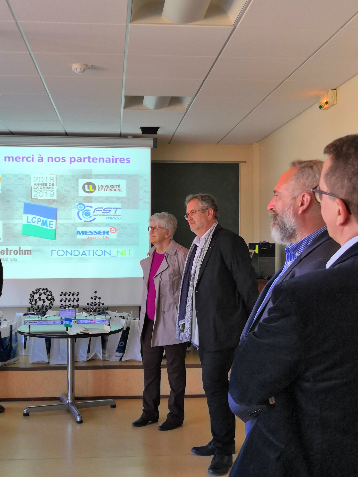Après leurs efforts communs et un buffet bien mérité, les lycéens se sont vu remettre leur récompense par le Président de l’Université de Lorraine, accompagné de Mme Jocelyne Dias, ajointe à la déléguée régionale Centre-Est du CNRS et d’Alain Walcarius, directeur du LCPME
