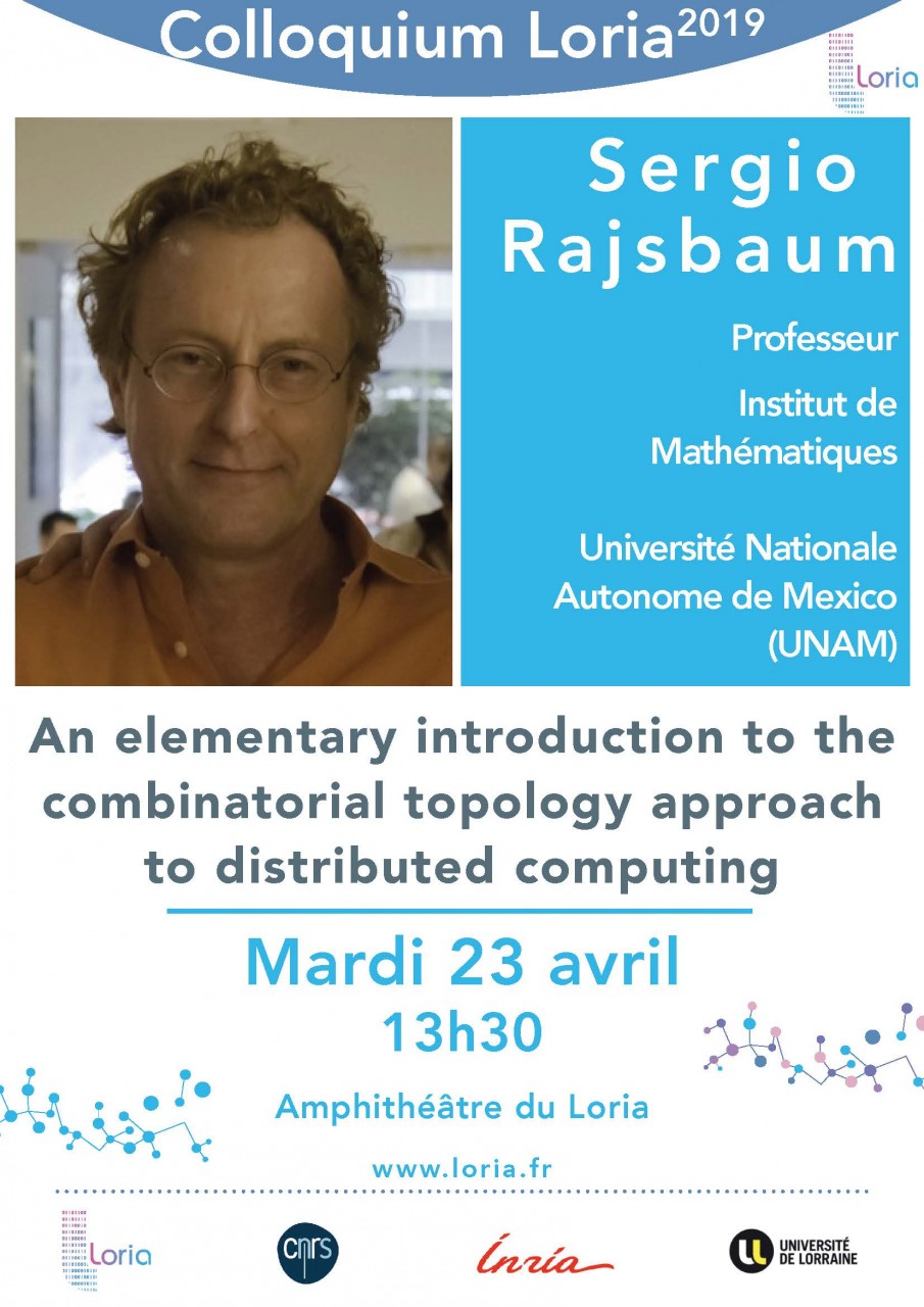 Pour le prochain colloquium du Loria, nous accueillerons le mardi 23 avril à 13h30 dans l’amphithéâtre, Sergio Rajsbaum, professeur à l’Institut de Mathématiques, à l’UNAM, l’Université Nationale Autonome de Mexico.