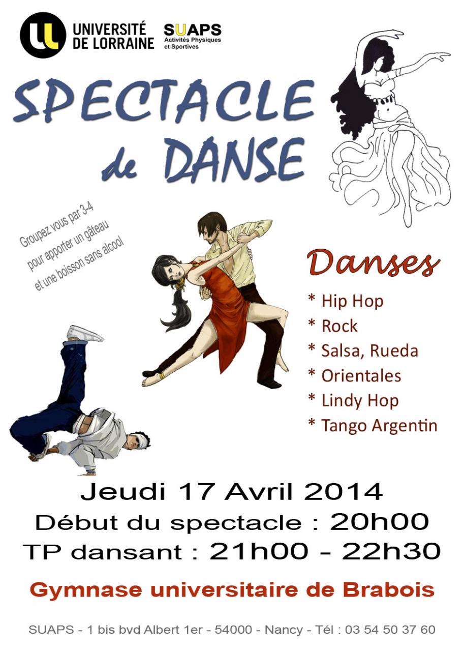 Le SUAPS de l'Université de Lorraine propose le jeudi 17 avril 2014 un spectacle de danses tout en couleurs.