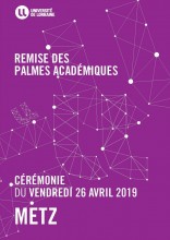 La cérémonie de remise des palmes académiques 2019 de l'Université de Lorraine se tiendra le vendredi 26 avril 2019 à partir de 14h à l'Espace Bernard-Marie Koltès à Metz.