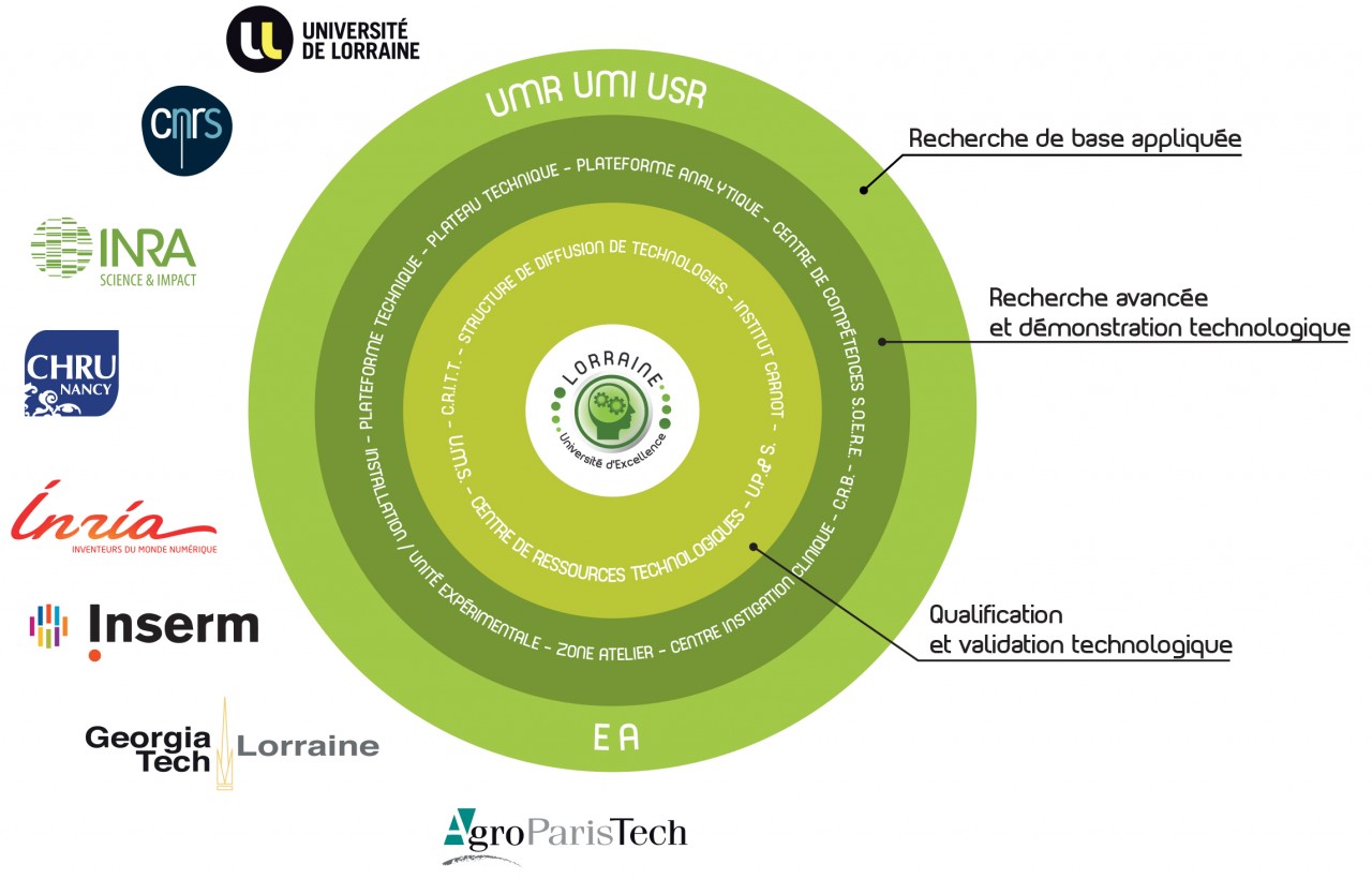 Notre site académique est relativement bien doté en équipements et plateformes de recherche. Toutefois, pour tirer pleinement profit de cette richesse et de cette diversité d’outils et de savoir-faire, nous gagnerons à raisonner en termes plus globaux et cohérents d'Infrastructures de Recherche, qui s'inscrivent pleinement dans une dimension régionale, nationale, européenne et internationale. Pour cela, il faut travailler sur la caractérisation de ces infrastructures, sur la clarté, la visibilité et la cohérence de l'offre de services qu'elles proposent aux équipes de recherches du site lorrain et au-delà, et le cas échéant au monde socio-économique, sur la gestion des données produites et sur le développement des compétences nécessaires pour les faire tourner.