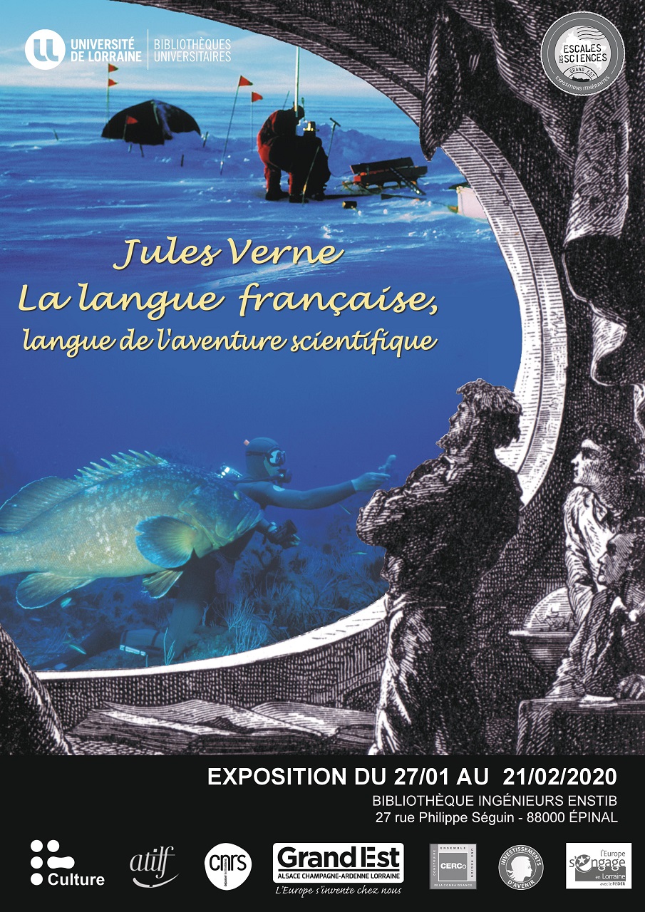 L'exposition «Jules Verne, la langue française, langue de l’aventure scientifique» met en parallèle des extraits de plusieurs chefs-d’oeuvre de Jules Verne et des extraits du journal du CNRS. Ainsi, vous pourrez (re)découvrir 8 oeuvres de Jules Verne : Voyage au centre de la terre, 20000 lieues sous les mers, L'île mystérieuse, Aventures du capitaine Hatteras, La chasse au météore, Cinq semaines en ballon, Robur le conquérant, De la terre à la lune.