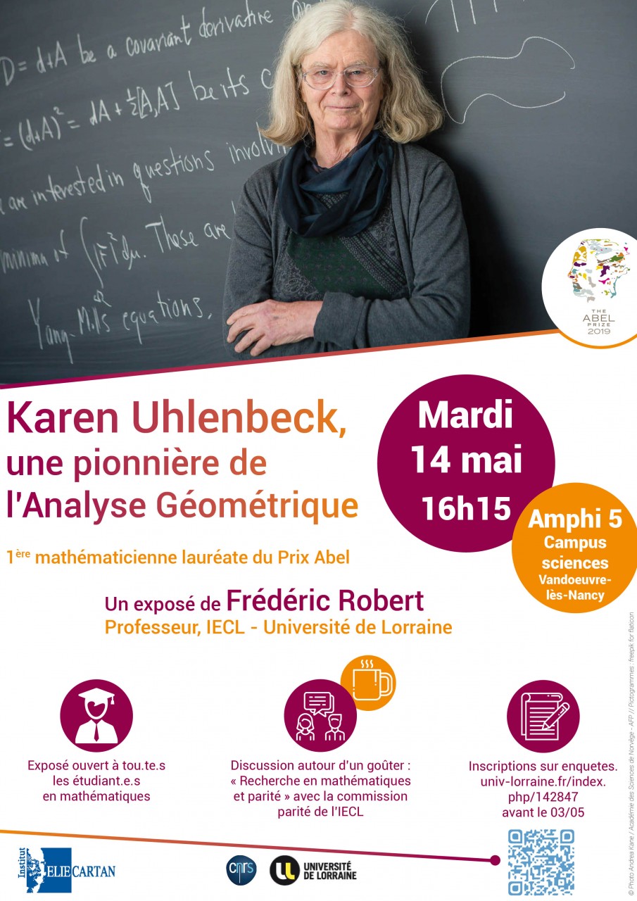 La commission parité de l'IECL organise un exposé à destination des étudiant·e·s de mathématiques :