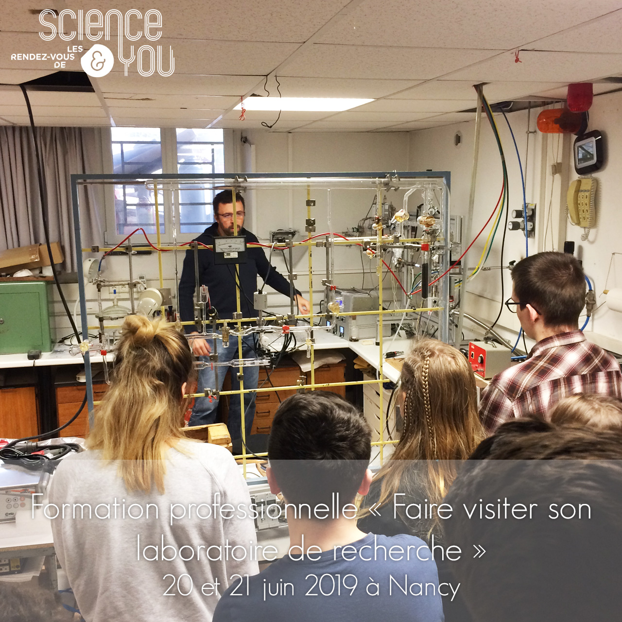 Les Rendez-vous de Science & You proposent une formation professionnelle "Faire visiter son laboratoire de recherche", les 20 et 21 juin 2019 à la Faculté des Sciences et Technologies, Salle ST13, Bâtiment Victor Grignard, Campus Aiguillettes, 54506 Vandoeuvre-les-Nancy (plan ici).