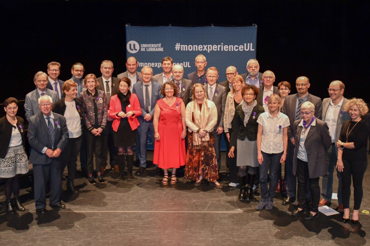 Des enseignants, des chercheurs, des personnels administratifs, techniques et de bibliothèques, ainsi que des partenaires de l'établissement ont été décorés par Pierre Mutzenhardt, président de l'Université de Lorraine et Jean-François Molter, directeur général des services de l'établissement.