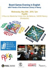 Venez passer une bonne soirée en jouant à des jeux de société et en conversant en anglais au Popkfé (Kinépolis) le mercredi 29 mai 2019 à 19h.