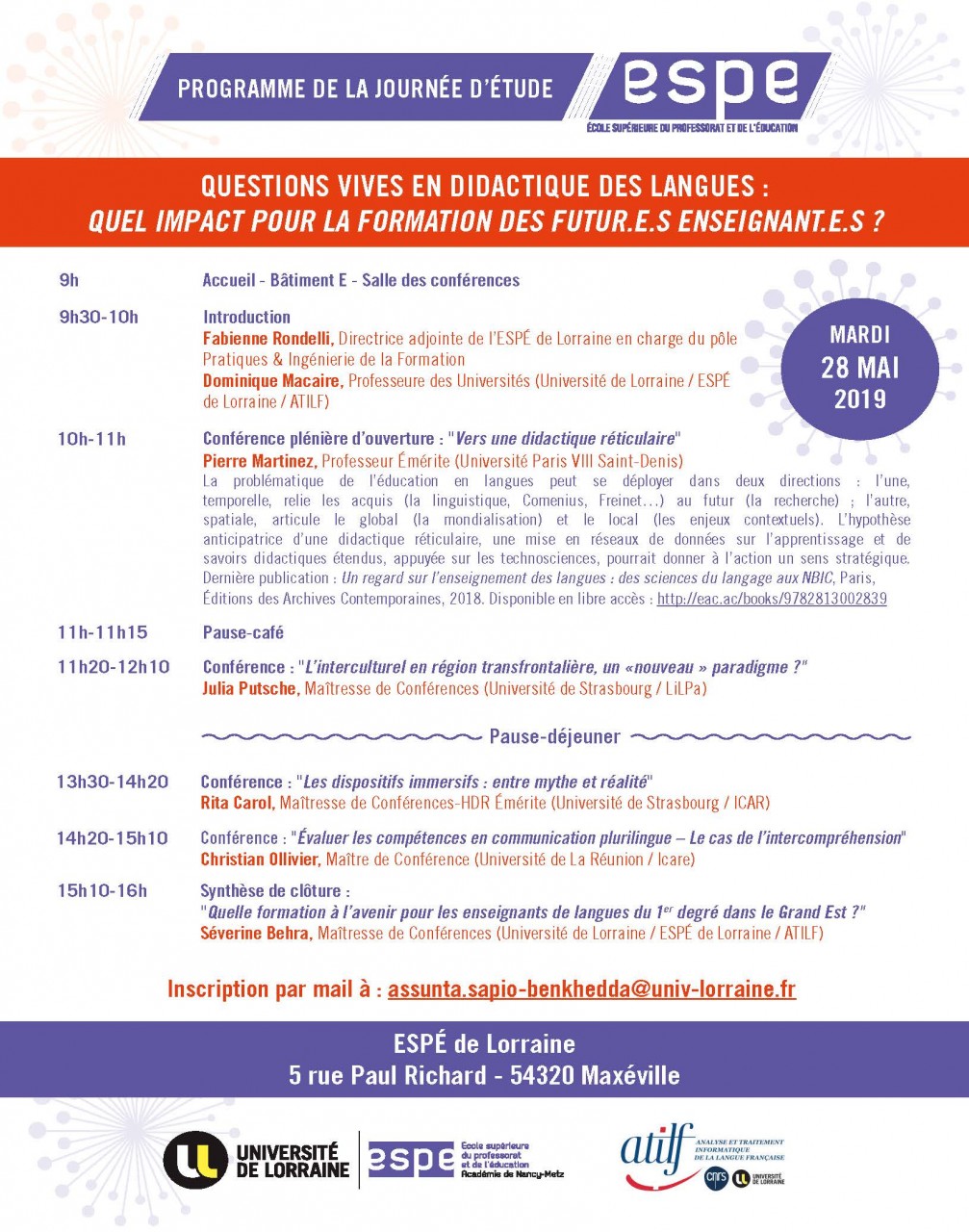 Mardi 28 mai 2019 9h-16h (Maxéville - salle des conférences, bâtiment E)