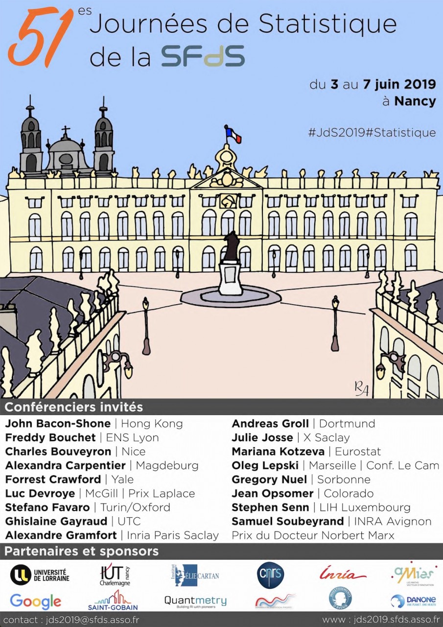 Organisées chaque année depuis 1970 par la Société Française de Statistique (SFdS), les Journées de Statistique constituent la plus importante manifestation scientifique du monde statistique francophone. Elles réunissent à chaque édition plus de 400 chercheurs, enseignants et praticiens.