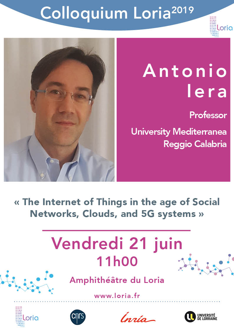 L’exposé s’intitulera : “The Internet of Things in the age of Social Networks, Clouds, and 5G systems”