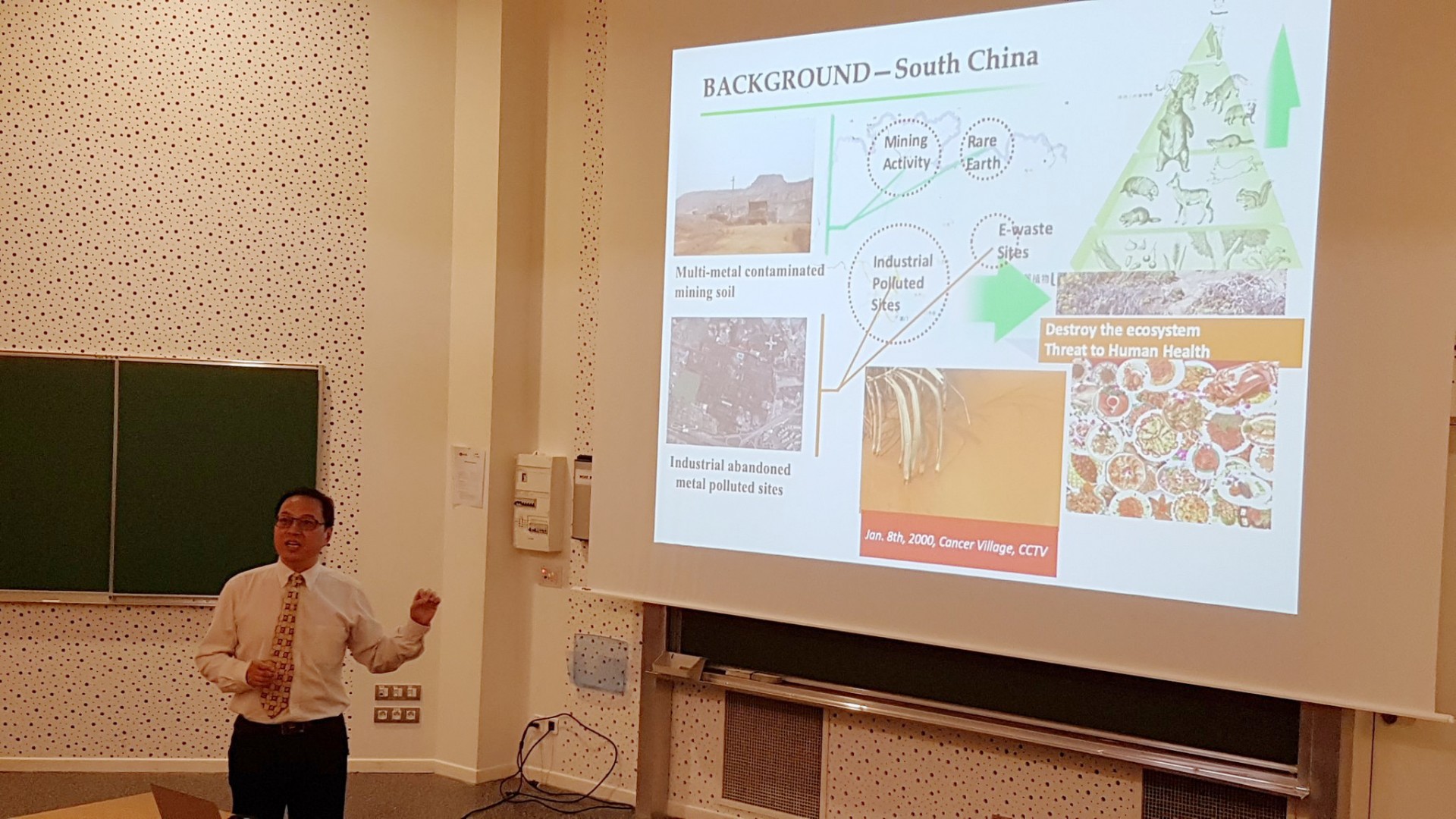 « Traitement des sols contaminés par des métaux lourds : progrès des vingt dernières années et défis », voilà le titre de la conférence donnée mardi 4 juin 2019 par le Professor@Lorraine Rongliang Qiu. La conférence (donnée en anglais) a présenté les progrès des vingt dernières années dans le domaine de la dépollution des sols contaminés par des métaux lourds, notamment la phytoextraction, la phytoexclusion et la phytostabilisation, qui ont été largement reconnus et adoptés en tant que technologies opérantes. Plusieurs processus clés ont été pris en compte, comme, par exemple, l'assemblage des microorganismes associés aux racines et les stratégies qui favorisent la croissance des plantes, la formation de nanoparticules naturelles contenant des métaux dans le sol. Les défis futurs de la phytoremédiation des sols ont également été abordés.