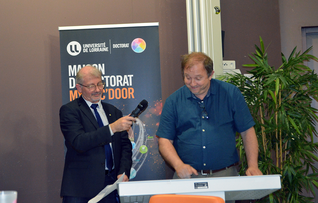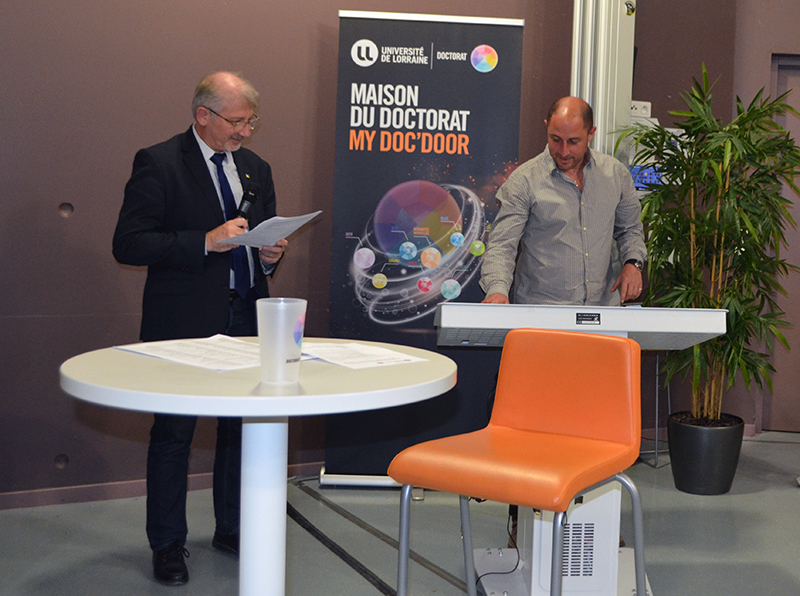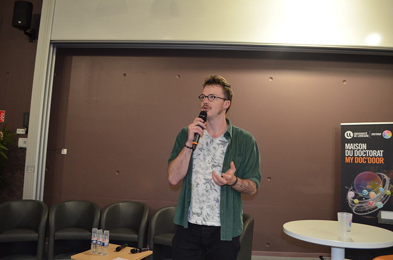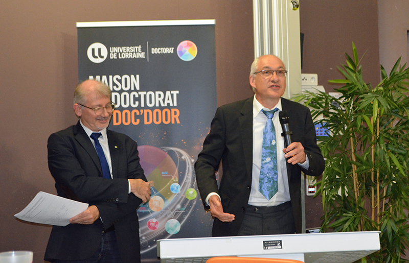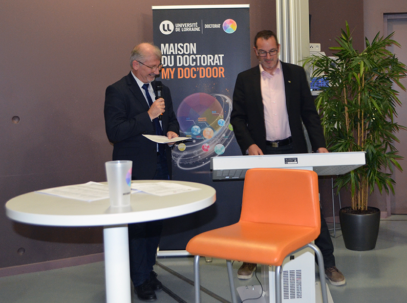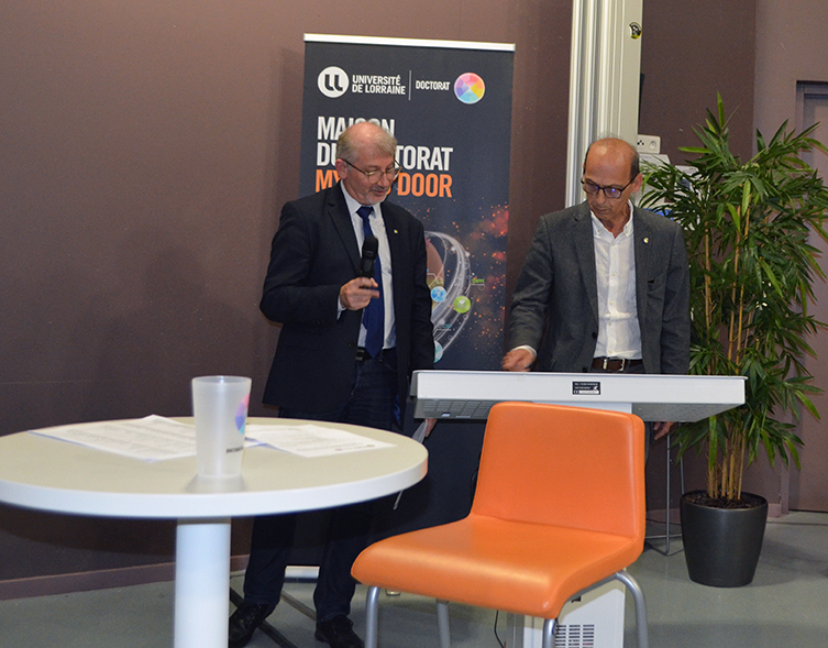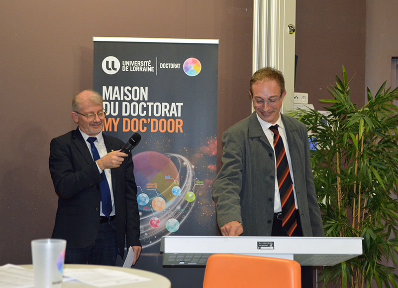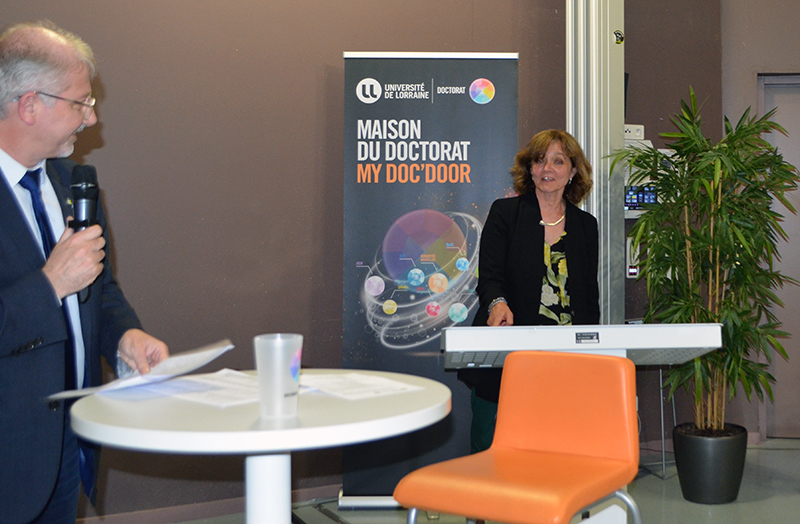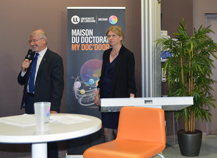 Pour en témoigner, Frédéric Villiéras, vice-président du conseil scientifique, a animé une table ronde qui rassemblait Clotilde Boulanger, vice-présidente déléguée à la stratégie doctorale, Melissa Moreira Melo Vieira et Audrey Aptel, respectivement doctorantes en histoire et en psychologie, Laurence Hung, chargée de mission Internationalisation, Annette Jarlegan, directrice du pôle scientifique Connaissance, langage, communication, sociétés (CLCS), Jean-Yves Marion, directeur du Laboratoire lorrain de recherche en informatique et ses applications (LORIA), Erwin Dreyer, directeur de recherche à l’INRA et Mounir Tarek, coordinateur du Collège lorrain des écoles doctorales(CLED).