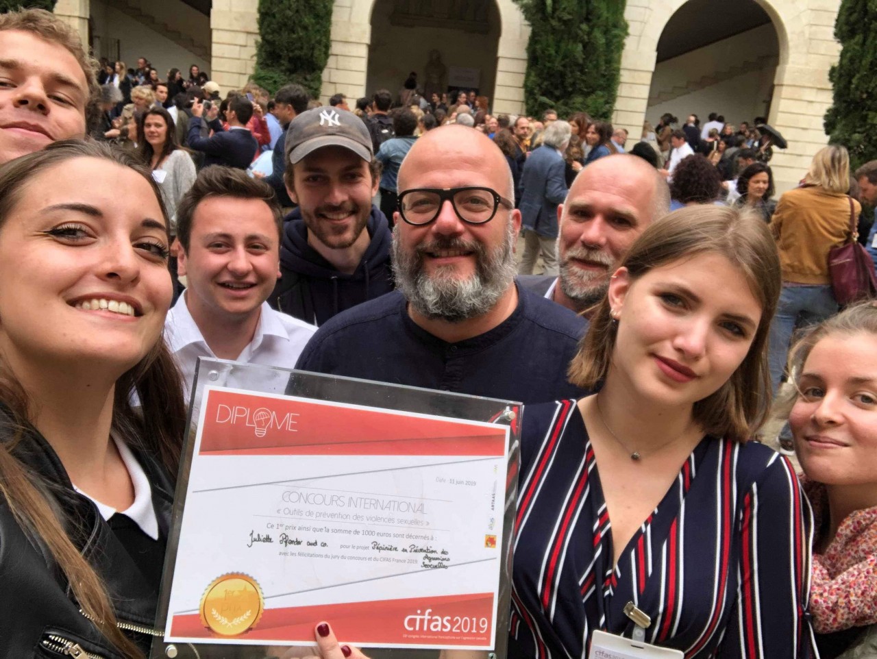 Le 11 juin 2019 à Montpellier, les étudiants du parcours Création numérique de la Licence 3 information Communication à Nancy ont remporté le grand prix du concours international d’outils de prévention lancé dans le cadre du 10ème Congrès International Francophone sur l’Agression Sexuelle (CIFAS).