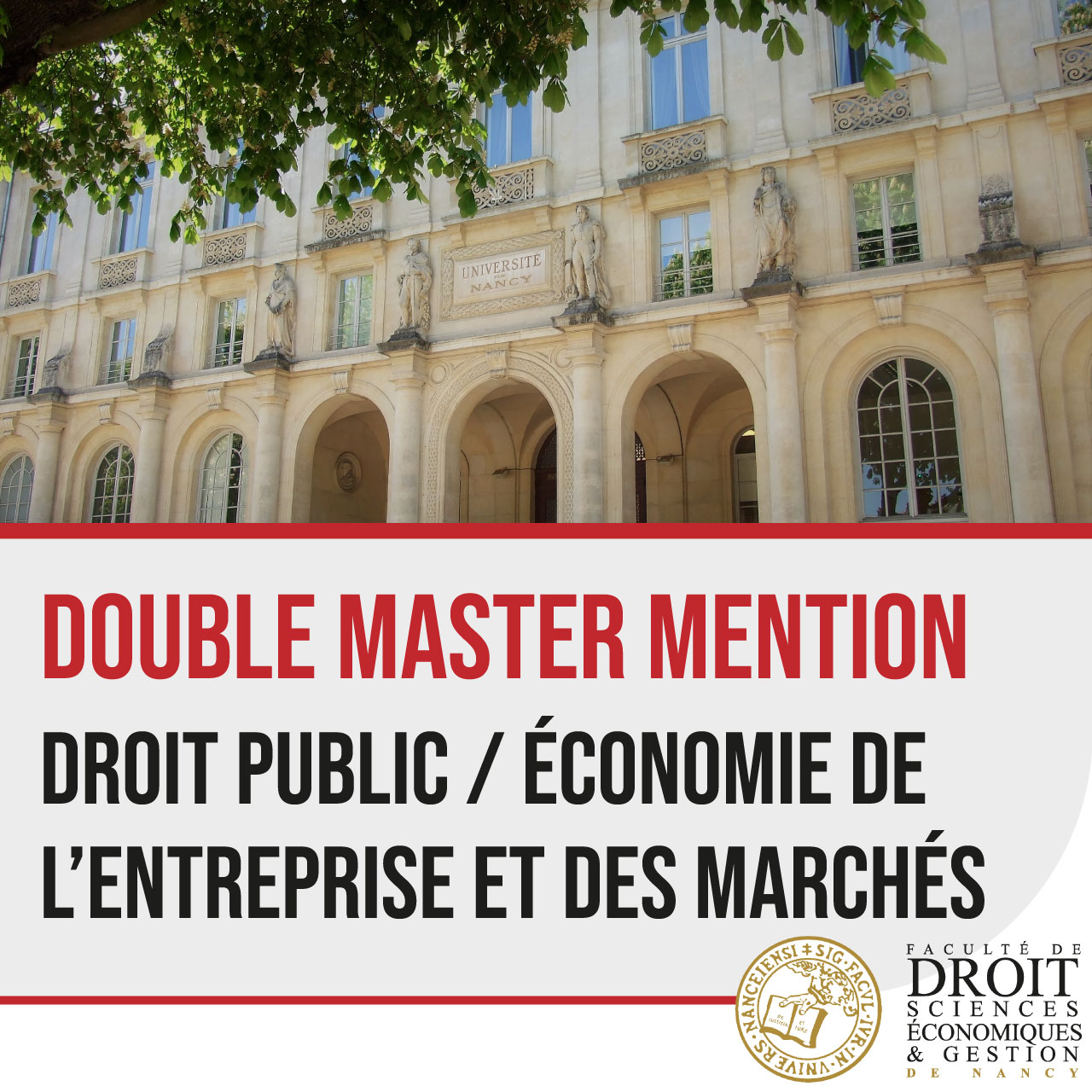 A la rentrée 2019, un double Master 1 Droit Public et Économie sera proposé à la Faculté de Droit Sciences Économiques et Gestion de Nancy.