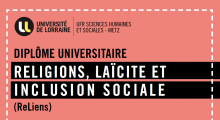 Ouvert pour la troisième année consécutive, le Diplôme Universitaire (DU) Reliens (Religion, Laïcité et Inclusion sociale) a pour problématique de former sur la question de la gestion des différences, religieuses notamment. Il se déroule à raison d’une journée par semaine (le lundi) de novembre à juin.