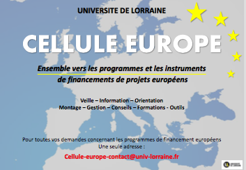 Pour toute demande relative aux programmes de financement européens ainsi que pour un accompagnement lors du montage et du suivi de vos projets européens contacter la cellule Europe de l’Université de Lorraine à l’adresse générique suivante :