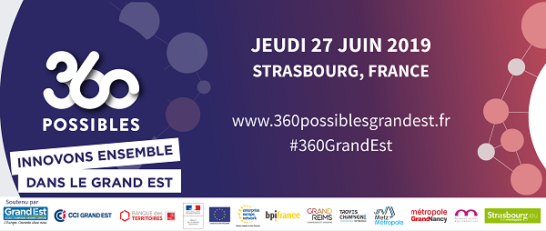 La première édition de « 360 possibles, innovons ensemble dans le Grand Est » organisée par l'agence régionale d'innovation du Grand Est - Grand E-nov - aura lieu jeudi 27 juin 2019 au Palais de la Musique et des Congrès à Strasbourg.