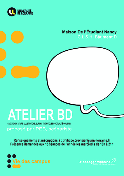 Les productions de l’atelier seront exposées fin mars, lors des « JACES » (Journées Arts et Culture dans l’Enseignement Supérieur). Peb&Fox ont réalisé l’adaptation en bande-dessinée des travaux de recherche des doctorants finalistes de Ma Thèse en 180 secondes - album Ma Thèse en 2 planches.