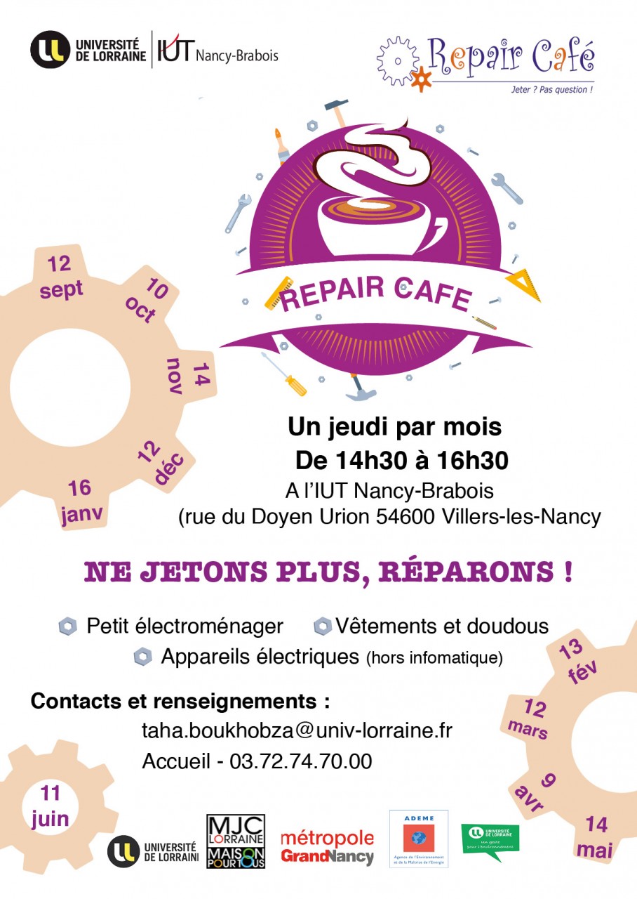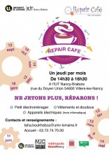 Cette année encore l'IUT Nancy-Brabois organise des ateliers Repair Café un jeudi par mois ouverts à tous, de 14h30 à 16h30.