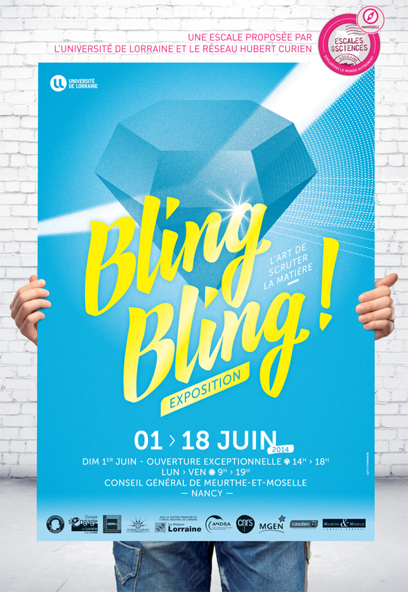 Un siècle plus tard, l’exposition Bling Bling ! propose de scruter la matière cristalline. Portrait de famille : Martha, la tante bourgeoise, s’interroge sur son verre en cristal et son émeraude antique. Serait-ce du toc ? Son neveu geek, sa nièce espiègle et leur père carreleur explorent, quant à eux, les propriétés des minéraux, métaux et protéines de leur quotidien.