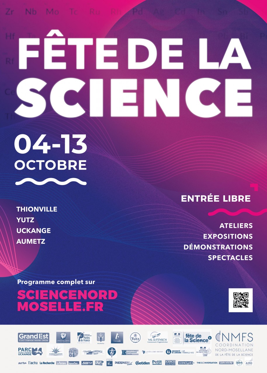 A l’occasion de la Fête de la Science 2019, l’Université de Lorraine et l’IUT de Thionville/Yutz, en association avec la Coordination Nord Mosellane pour la Fête de la Science (CNMFS), organisent plusieurs manifestations entre Aumetz, Thionville/Yutz et Uckange du 4 octobre au 13 octobre 2019.