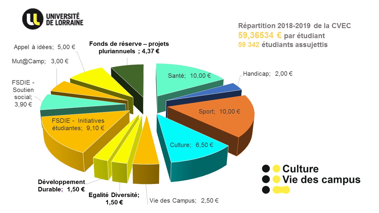 La Contribution Vie Etudiante et de Campus (CVEC) a été mise en place depuis la rentrée 2018-2019. Elle sert à maintenir et améliorer les services liés à la vie universitaire et à la culture (santé-social, sports, accompagnement des étudiant.e.s en situation de handicap, vie des campus, culture)