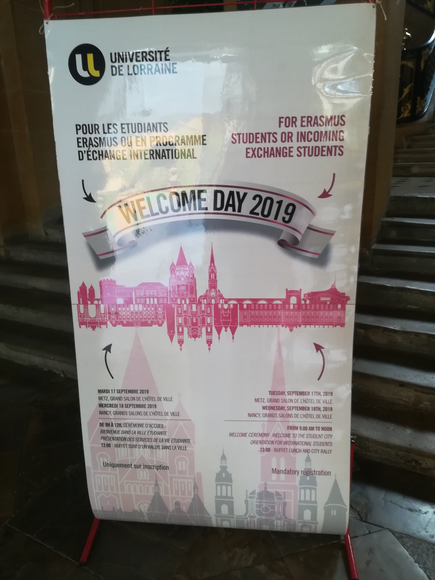 Au programme de ces deux matinées conviviales : accueil institutionnel, présentation des différents services : vie étudiante, culture, logement, santé, sport… et activités dans la ville dès 14h. Des stands d’informations étaient également à disposition pour les étudiants : CROUS Lorraine, Office de Tourisme de Metz, ESN Nancy, MGEL…