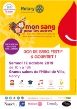 Le Rotary organise le samedi 2 octobre une grande collecte de sang à l'hôtel de ville de Nancy (400 donneurs sont attendus). Tous les clubs de Nancy sont impliqués, y compris les jeunes du Rotaract, dont plueiurs membres sont étudiants à l'Université de Lorraine.