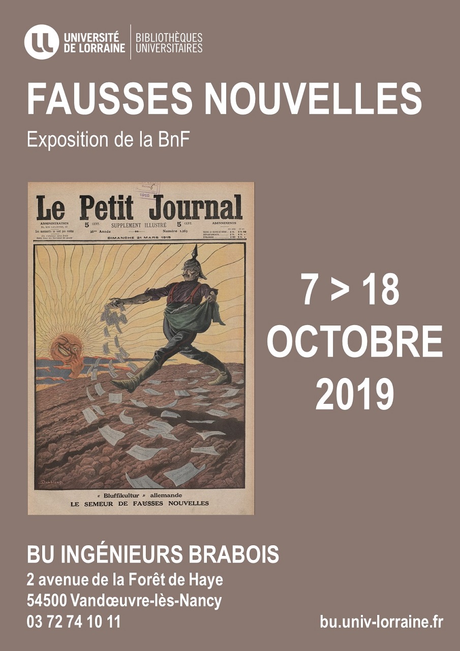 La bibliothèque ingénieurs Brabois vous invite à découvrir une exposition sur les fausses nouvelles, créée par le service de l'éducation artistique et culturelle de la BnF et le CLEMI.