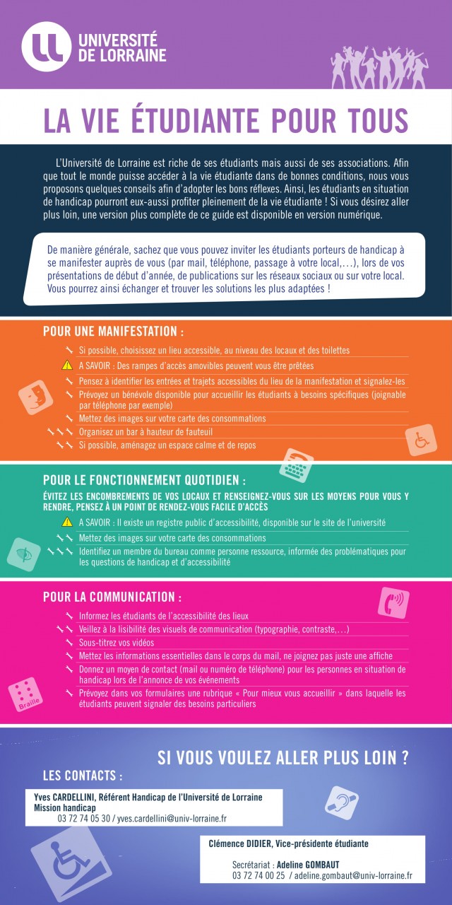 Elle s'adresse à toutes les associations étudiantes, afin qu'elles appréhendent mieux les enjeux liés à la participation des étudiants en situation de handicap à leurs activités. En effet, beaucoup d'étudiants en situation de handicap ne peuvent participer à la vie étudiante en raison de trop nombreux freins.