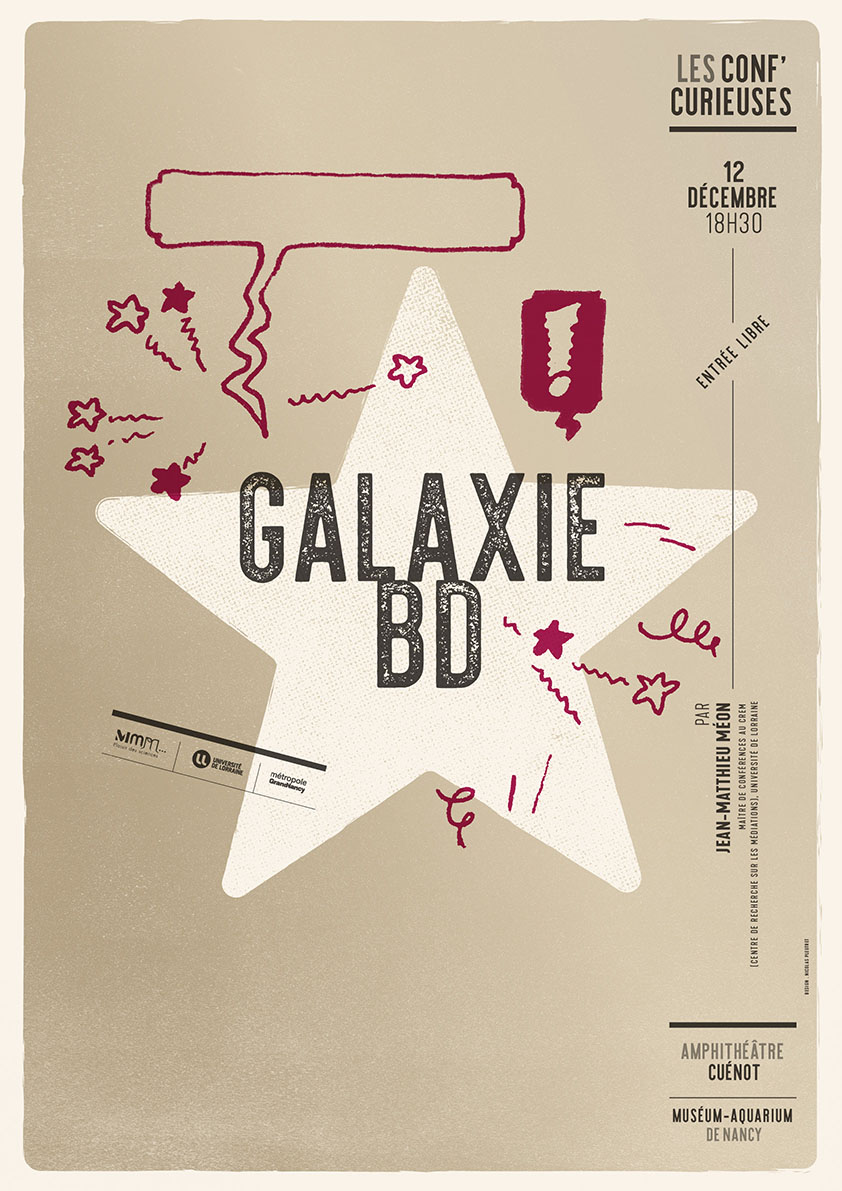 Reprenant les trajectoires proposées par certaines aventures de Tintin — des étoiles à la Terre dans L’Étoile Mystérieuse et de la Terre vers les étoiles dans Objectif Lune —, cette excursion propose de découvrir des auteurs et des œuvres antérieures, contemporaines ou postérieures à celles d’Hergé mais partageant cette thématique stellaire. Ce sera l’occasion de souligner les particularités narratives et stylistiques des albums de Tintin mais aussi d’illustrer la grande diversité que la bande dessinée propose depuis plusieurs décennies.