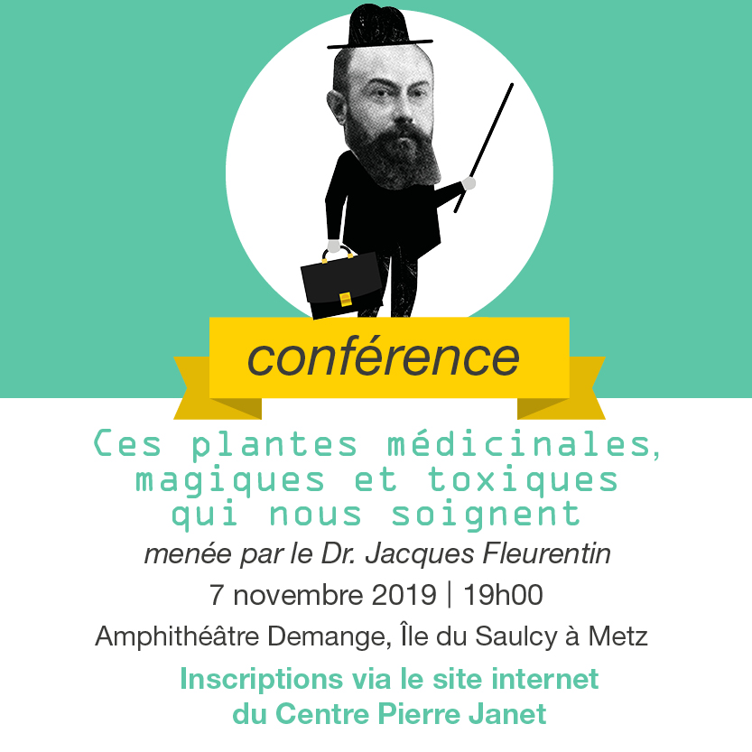 Evénement gratuit organisé par le Centre Pierre Janet, de l'Université de Lorraine. Inscriptions : http://centrepierrejanet.univ-lorraine.fr/2019/10/03/conference-ces-plantes-qui-soignent/