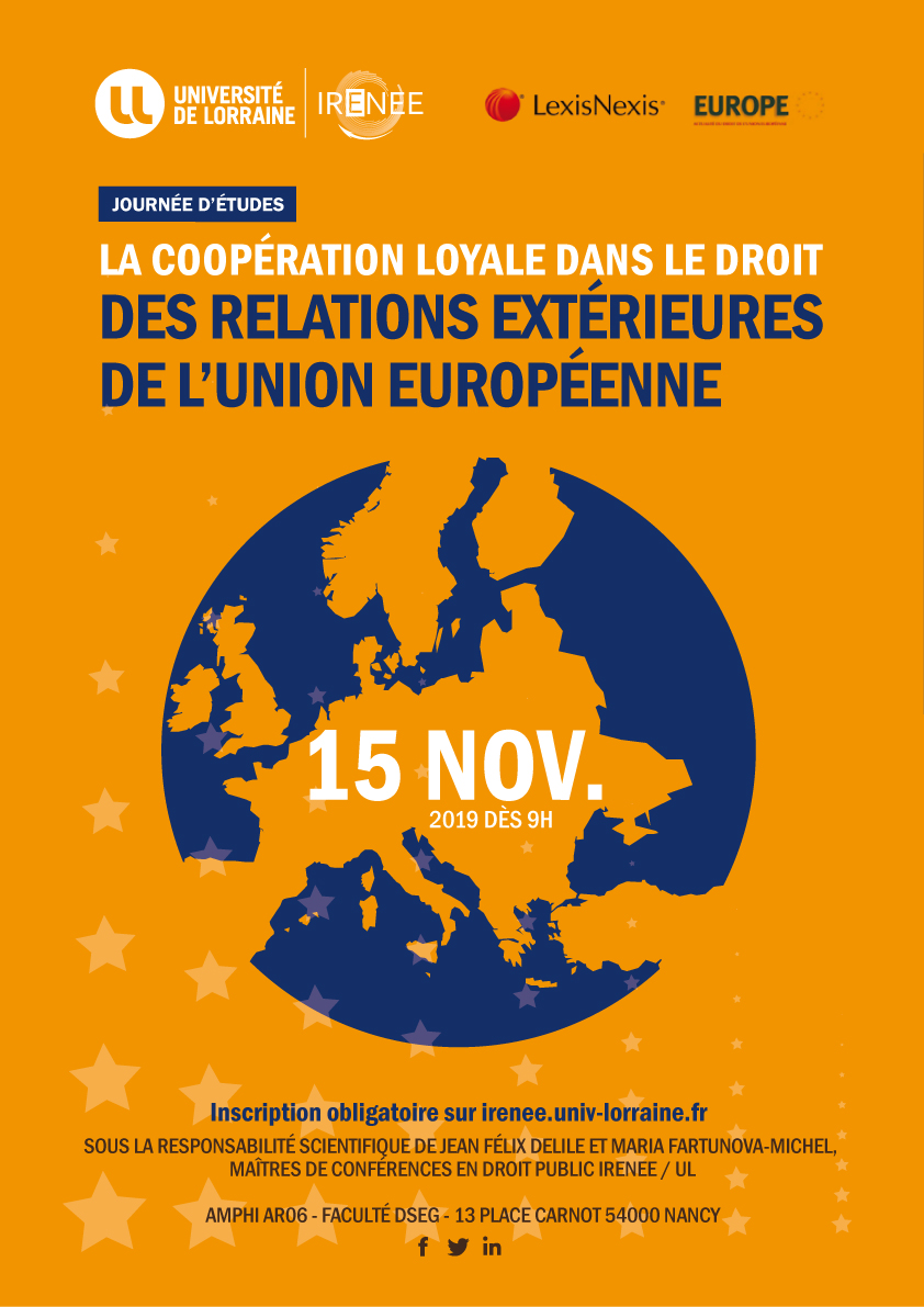 Résumé : Le principe de coopération loyale est un fondement identitaire de l’Union européenne dont il solidarise les différents acteurs par un réseau d’obligation réciproques. Ces obligations sont supposées constituer l’assise d’une action cohérente permettant de réaliser efficacement les objectifs assignés à l’Union dans les traités institutifs. Le principe de coopération loyale revêt une importance toute particulière dans le cadre des relations externes de l’Union européenne. Une action externe cohérente est en effet indispensable pour que celle-ci réalise l’objectif d’ériger l’Union en acteur crédible et global sur la scène internationale. La coopération loyale appelle une prise en considération de cet objectif par les institutions de l’Union et les États membres lorsqu’ils interviennent sur la scène internationale. Le réseau d’obligations réciproques organisant le cadre institutionnel de l’action externe de l’Union sera présenté dans la première partie de la journée d’étude. De la conclusion des traités à leur application, en passant par la représentation des acteurs européens sur la scène internationale, les différents lieux d’exercice de la fonction internationale de l’Union seront étudiés au prisme de la coopération loyale. La mise en œuvre de ce principe dans les différentes politiques externes de l’Union telles que la politique étrangère et de sécurité commune, la politique commerciale commune ou encore l’espace de liberté, de sécurité et de justice sera étudié dans la seconde partie de journée. L’ambition de cette manifestation est de dépasser l’analyse strictement juridique des obligations découlant de la coopération loyale, pour dresser un panorama général du respect de celles-ci par les institutions de l’Union et les États membres. Cela permettra de déterminer si la coopération des États membres et des institutions de l’Union est suffisante dans le cadre de leur action externe pour que les États tiers envisagent l’Union européenne comme un partenaire compréhensible, prévisible et fiable, ce qui conditionne son aptitude à s’affirmer comme un acteur crédible et global des relations internationales.
