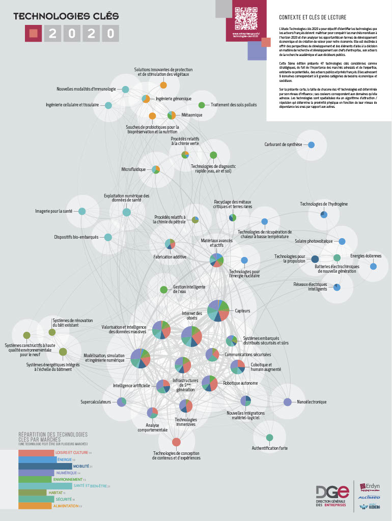 L’étude analyse 47 technologies clés touchant à neuf domaines applicatifs, alimentation, environnement, habitat, sécurité, santé et bien-être, mobilité, énergie, numérique, loisirs et culture. 47 fiches de synthèse sont ici proposées, avec une structure commune. La technlogie concernée est d’abord décrite, avant que ne soient explicités les enjeux qui la rendent « clé ». Vient ensuite une analyse des marchés, avant que ne soient développés les principaux défis identifiés pour son développement – défis technologiques, défis commerciaux et en termes d’usage, enjeux réglementaires. La fiche se conclut par une analyse des principaux acteurs français, académiques et entreprises – ou ceux considérés comme tels –, avec une évaluation de leur position à l’échelle mondiale. Cette analyse est notamment destinée à orienter les entreprises, ainsi que les décideurs vers les secteurs les plus porteurs.