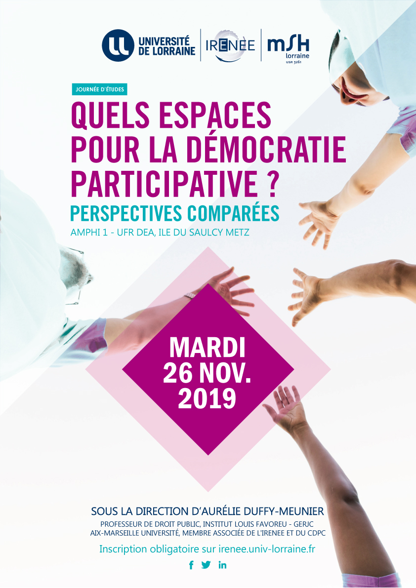 Quelle forme recouvre la démocratie participative en France et comment analyser l’expérience française par rapport à celle d’autres pays ? Ces projets de réforme vont-ils vraiment « revitaliser la démocratie par la participation citoyenne » en France, comme le souligne l’exposé des motifs du projet de loi constitutionnelle ? Le niveau local est-il le ressort à partir duquel les institutions démocratiques peuvent réinventer une démocratie représentative en crise ? La journée d’étude aura ainsi pour objet de répondre à ces interrogations et d’analyser les enseignements que le droit français peut tirer de l’expérience des systèmes étrangers en matière de démocratie participative au niveau local.