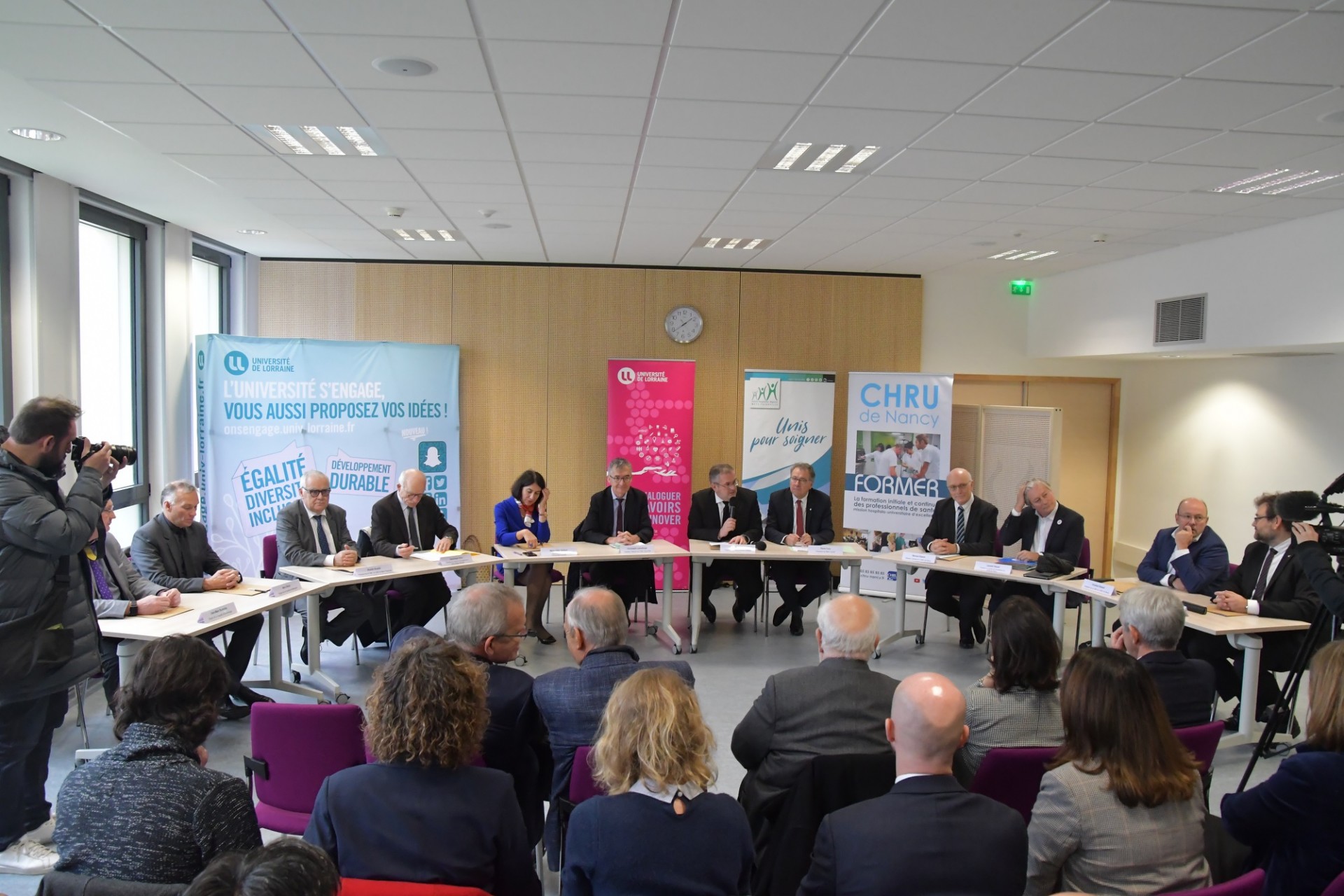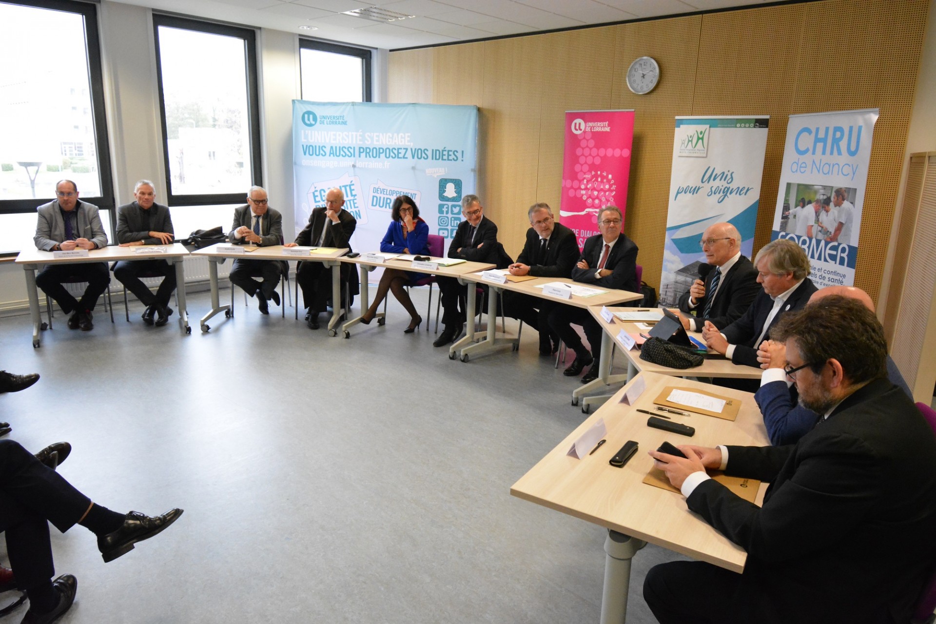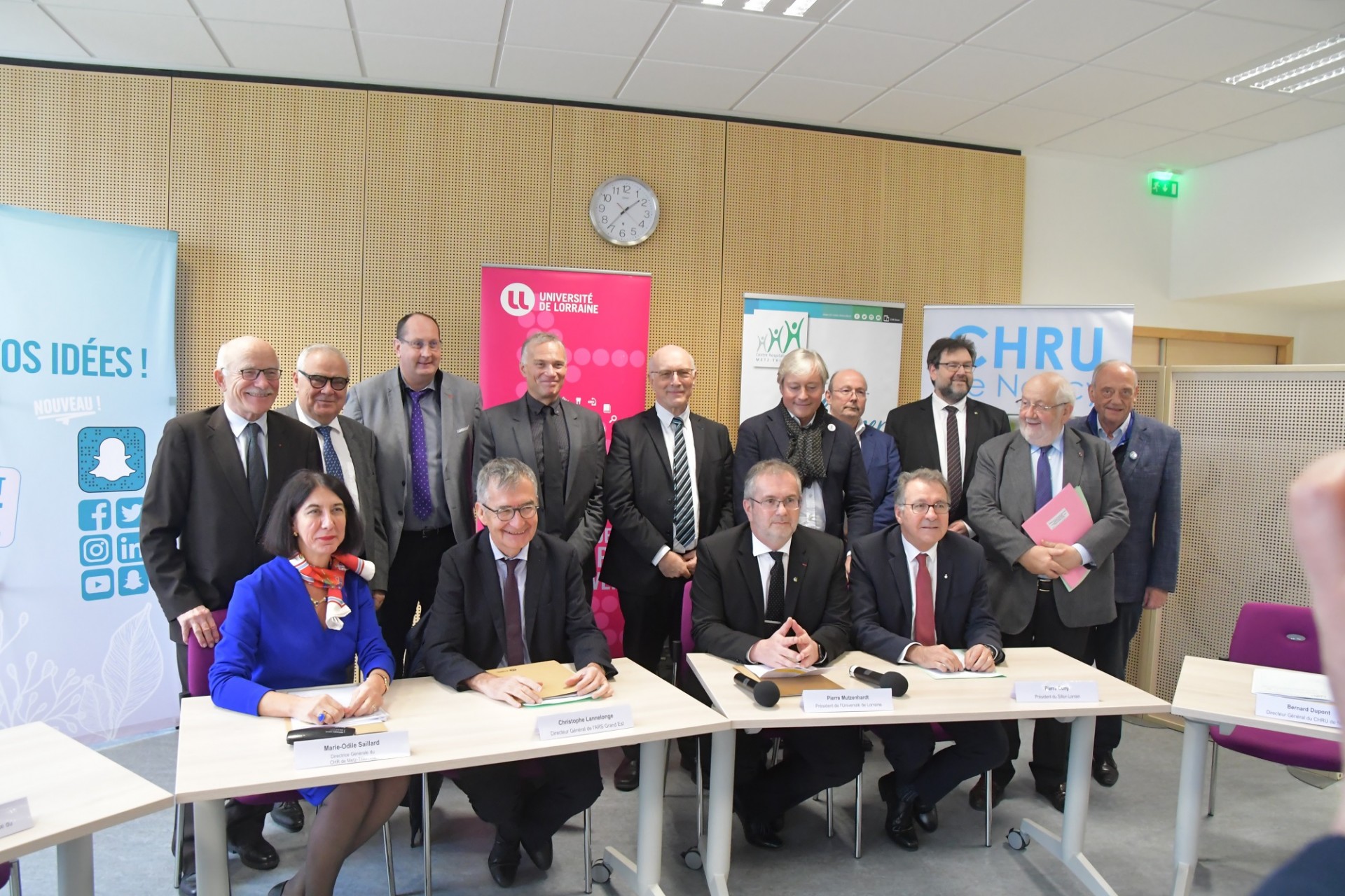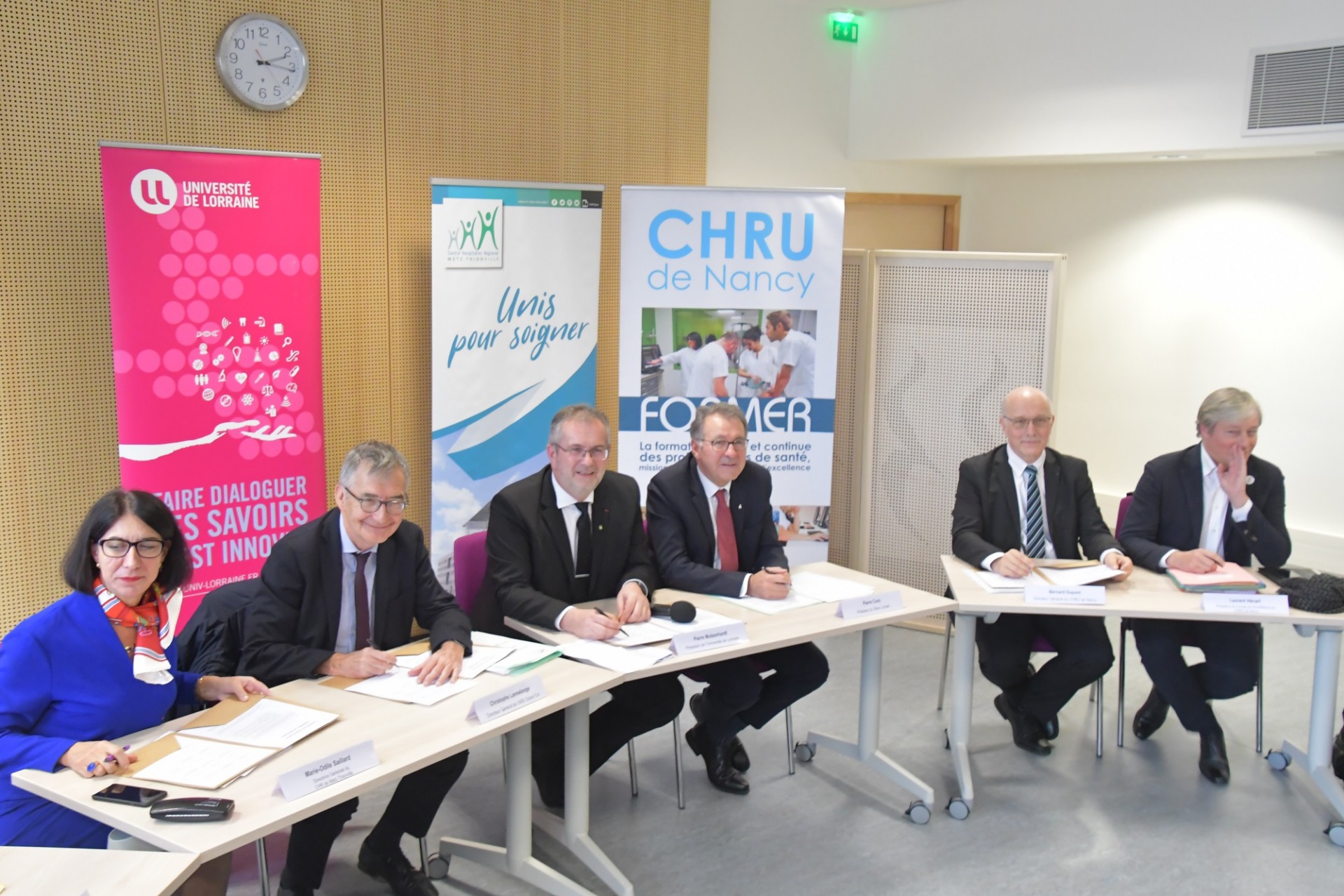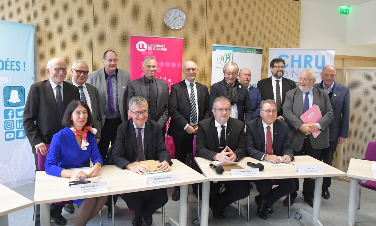 Cette signature de convention s’est déroulée en présence du président du Sillon Lorrain et des présidents du Conseil de surveillance du CHR Metz-Thionville et CHRU de Nancy, et a rassemblé autour de la table, neuf signataires :