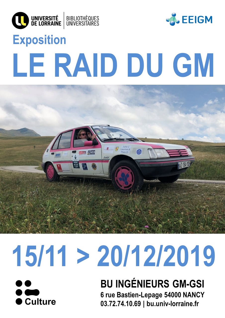 Laurine Batt, Julie Corcy, Théo Desaintmartin et l'équipe de la bibliothèque EEIGM-ENSGSI présentent l'exposition photographique "Le Raid du GM et l'EUROP'RAID".