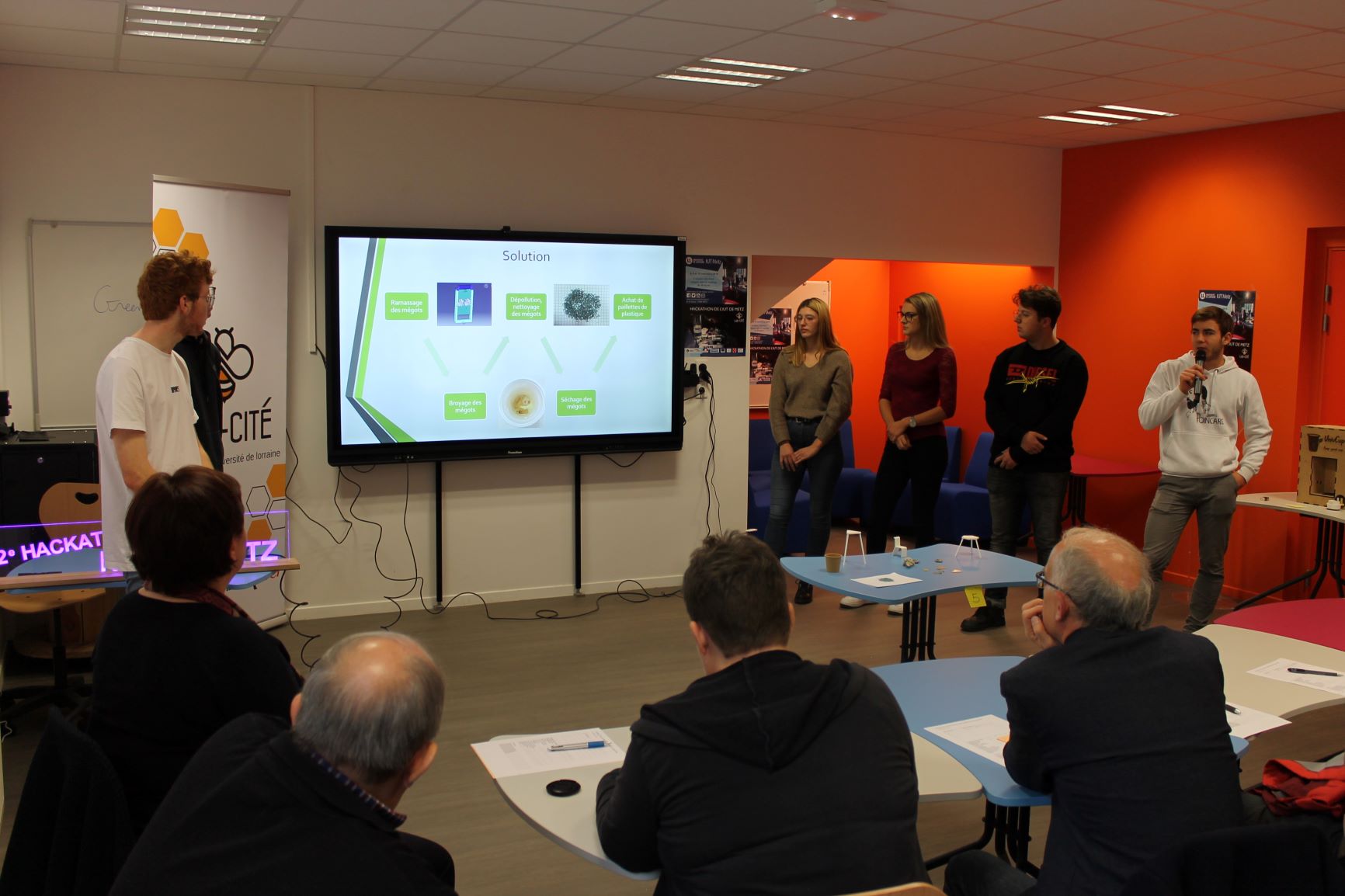 De même, des seniors citoyens sont venus assister au « Pitch » intermédiaire à mi-parcours pour écouter et apporter un regard éclairé et bienvenu aux jeunes étudiants.