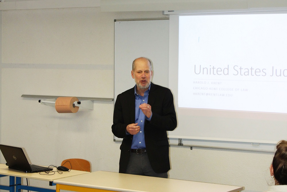Invité par Jean-Luc Piotraut, maître de conférences en droit privé, la faculté de droit, économie et administration de Metz a eu le plaisir d’accueillir, mercredi 20 novembre 2019, Harold J. Krent, doyen et professeur du Chicago-Kent College of Law. Les étudiants du master 2 Droit des affaires transfrontières ont eu le plaisir de suivre le cours de monsieur Krent, United States Judiciary, avant son intervention, jeudi 21 novembre, devant les étudiants de l’antenne de Sarreguemines.