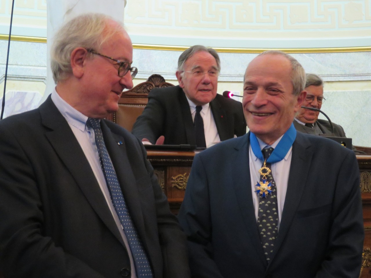 La cérémonie de remise des insignes de Commandeur de l’Ordre national du mérite à Patrick Netter, professeur émérite de l’Université de Lorraine, par Antoine Durrleman, Membre de l’Académie Nationale de Médecine, Président de Chambre maintenu à la Cour des Comptes, a eu lieu le jeudi 14 novembre 2019 à l’Académie Nationale de Médecine à Paris.