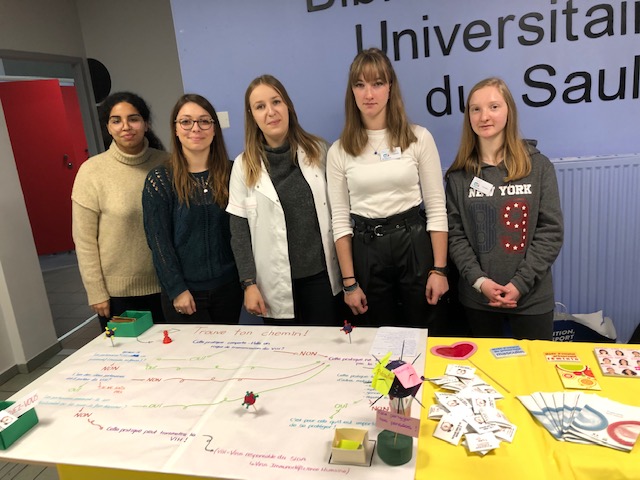 Les relais du SUMPPS ,les élèves en Terminale accompagnement et soins à la personne du lycée Anne de Mejanes ainsi que 8 étudiantes en maïeutique se sont mobilisés pour concevoir des outils et les faire parler auprès de leurs pairs étudiants.